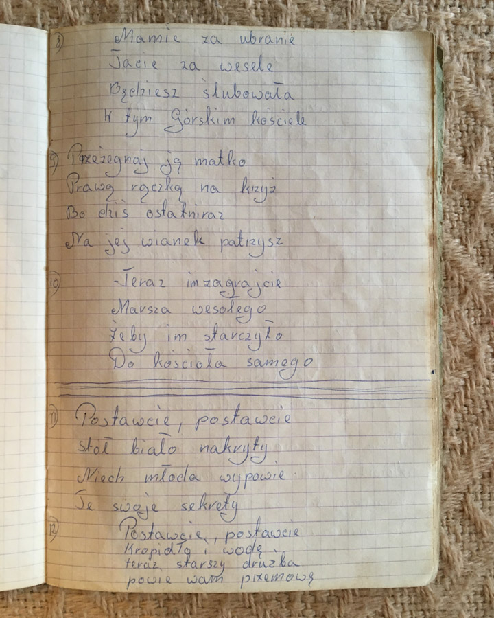 Przepisy kulinarne, pieśni weselne, Halina Walczak, zeszyt II